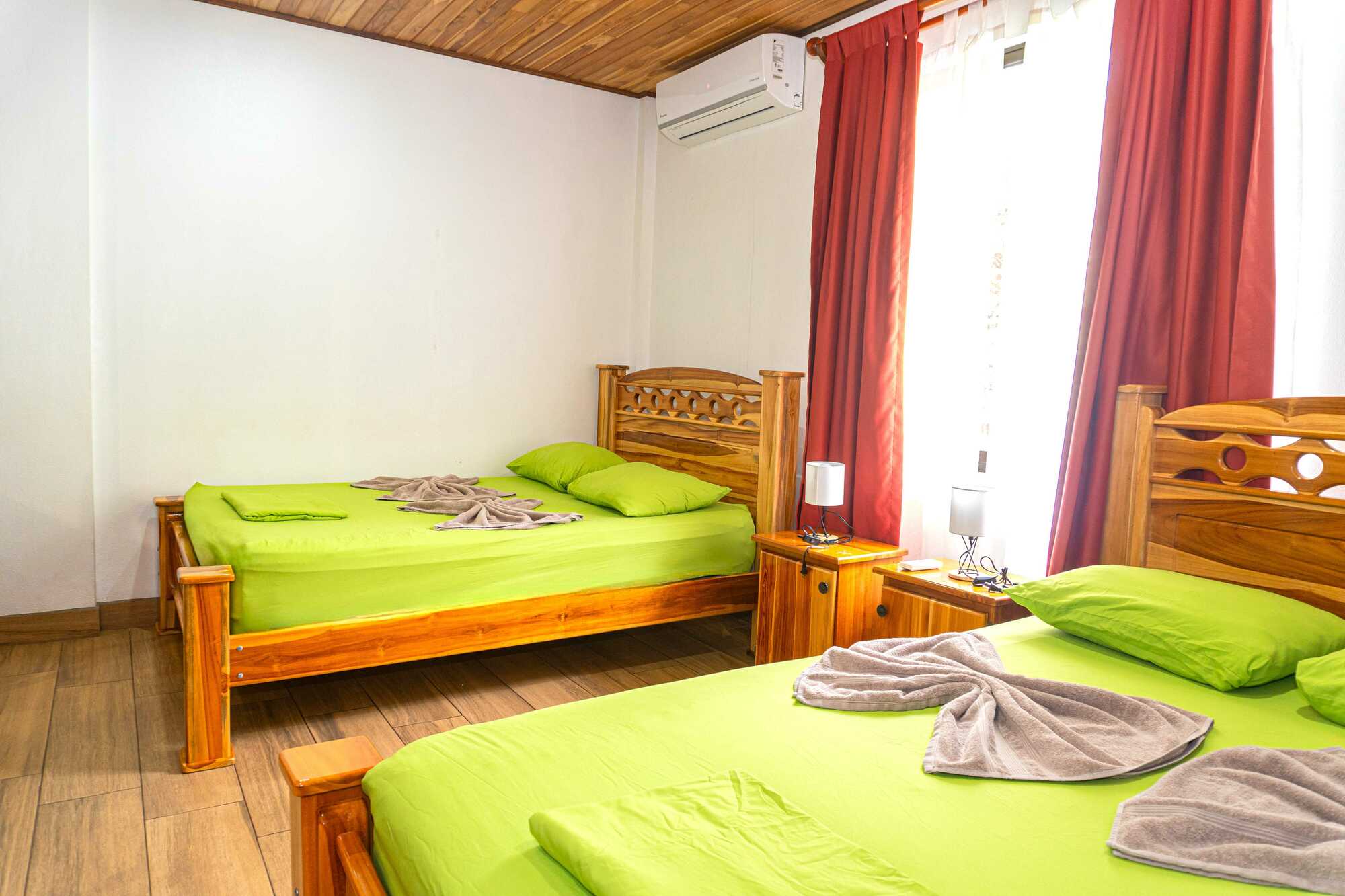 Naše čtyřlůžkové pokoje Superior se dvěma manželskými postelemi jsou ideální volbou pro rodiny nebo skupiny přátel hledající prostorné a pohodlné zázemí. Tyto pokoje mají klimatizaci, vlastní koupelnu se sprchovým koutem, WC, fénem a toaletními potřebami. K dispozici je lednice, příslušenství pro přípravu čaje a kávy a stůl se židlemi k plánování výletů. Tyto pokoje se nachází v 1. a 2. patře.